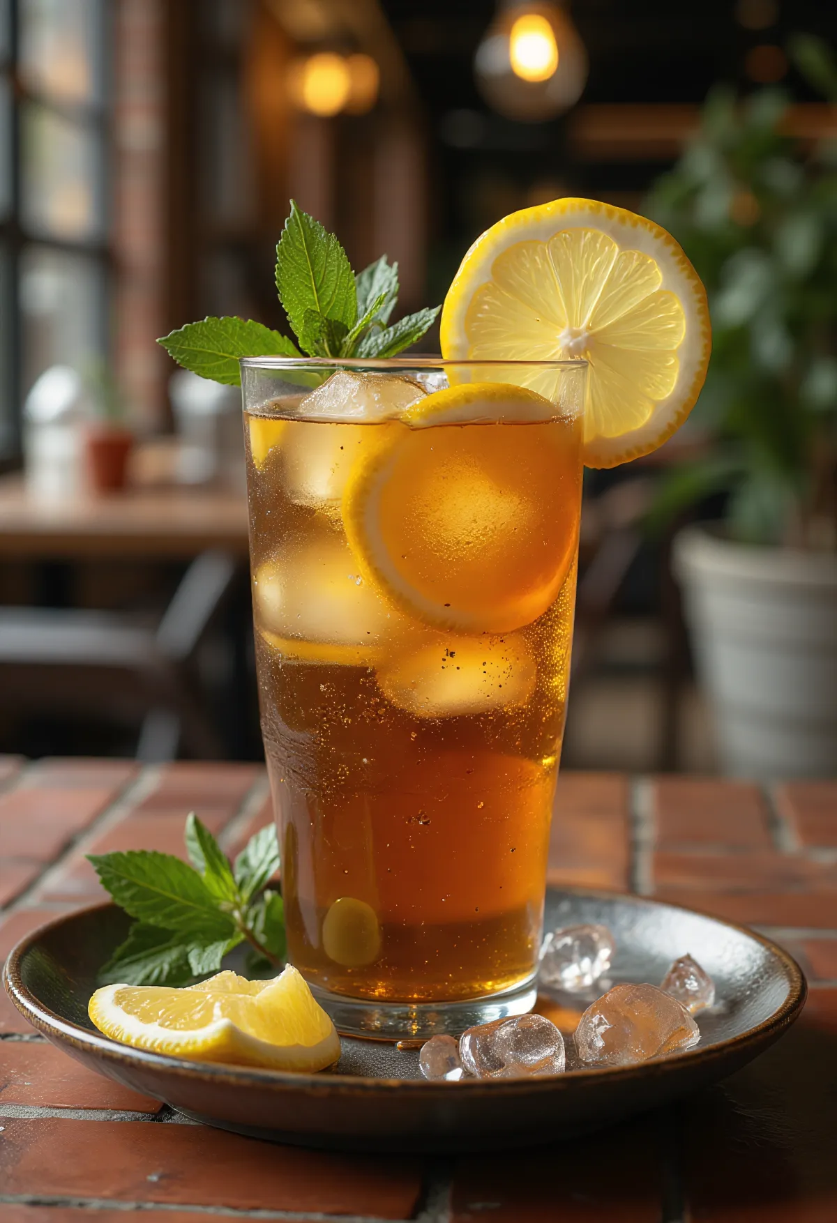 Ulijte u čaše na kocke leda, ubacite krišku limuna i list metvice.